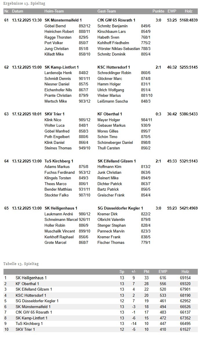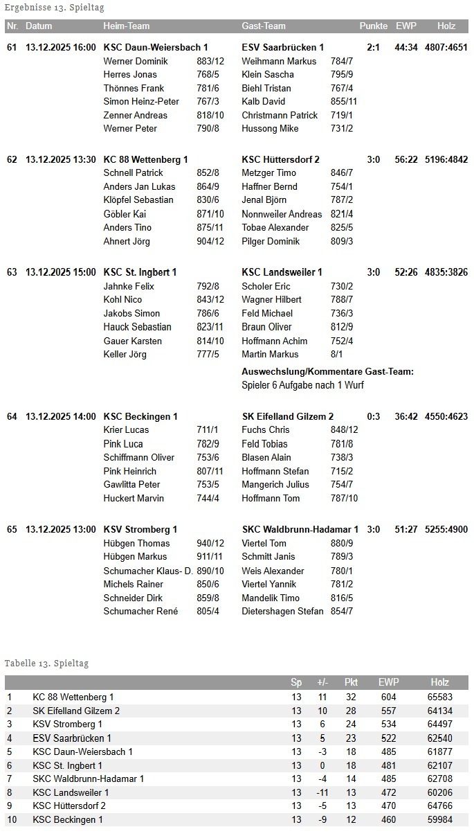 Ergebnisse Bundesliga - KSC Heuchelheim