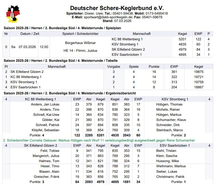 4. Spieltag Meisterrunde 2. Bundesliga Süd Herren