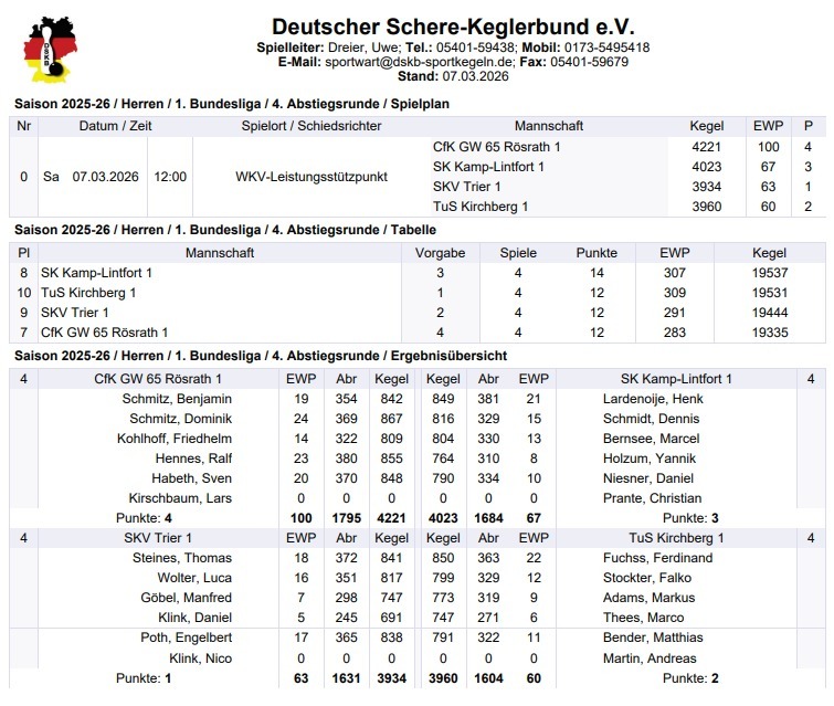 4. Spieltag Abstiegsrunde 1. Bundesliga Herren