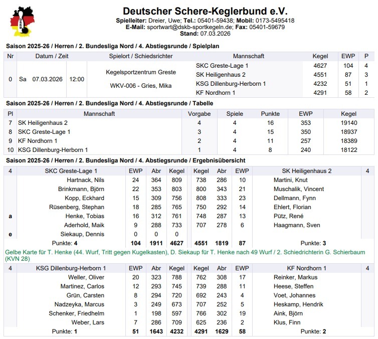 4. Spieltag Abstiegsrunde 2. Bundesliga Nord Herren