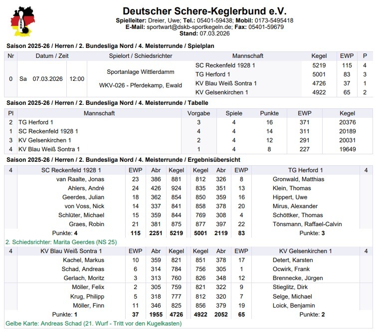 4. Spieltag Meisterrunde 2. Bundesliga Nord Herren