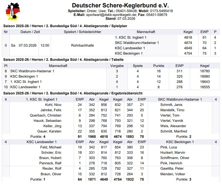 4. Spieltag Abstiegsrunde 2. Bundesliga Süd Herren